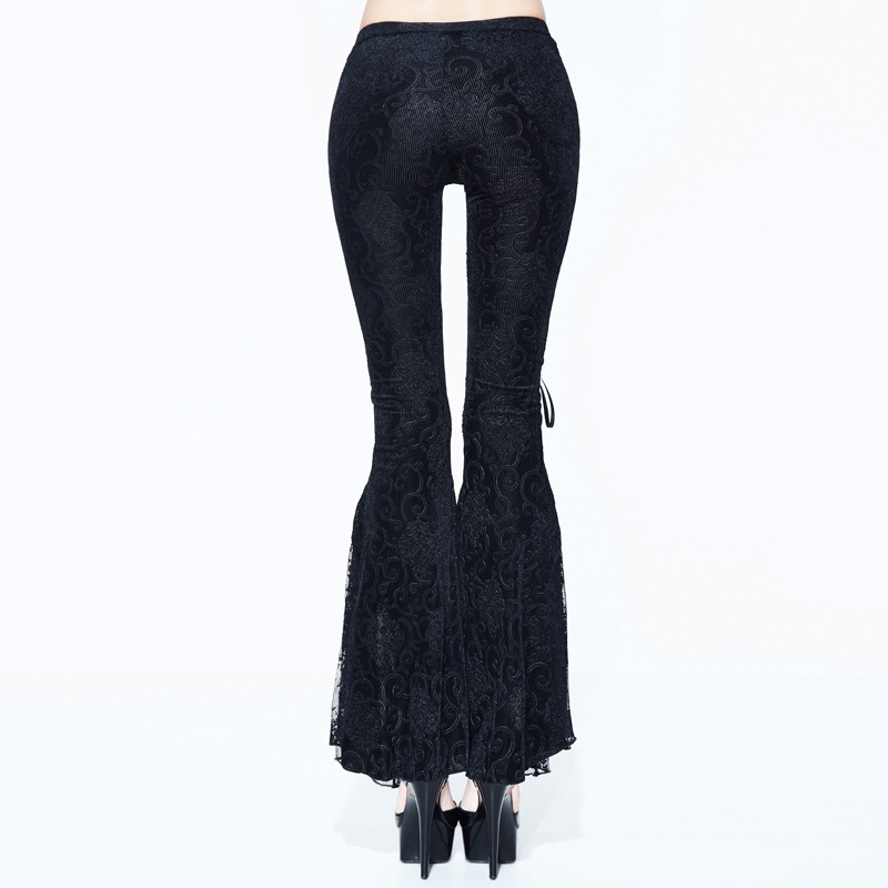 Pantalon à pattes d’éléphant en velours côtelé à motif et dentelle