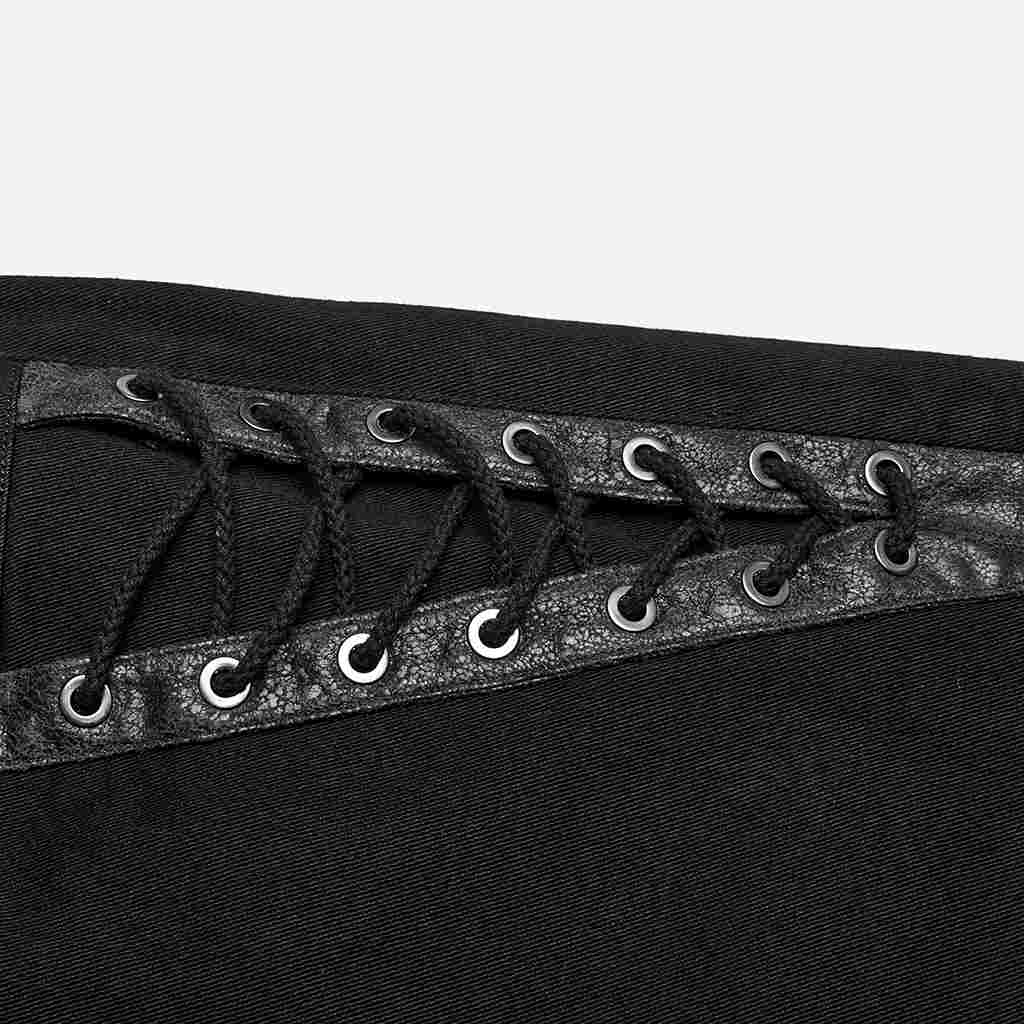 Simili cuir craquelé noir des deux côtés, décoré d’œillets
